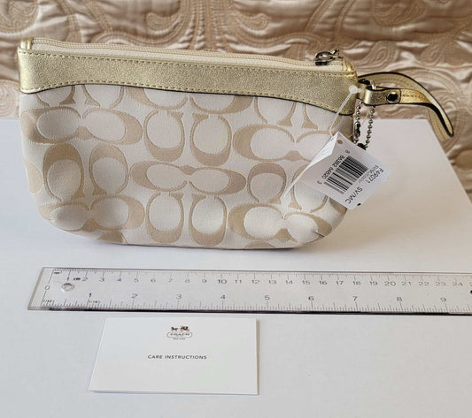 Coach: Beige Signature Zip Wristlet NEW WITH TAGS