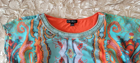 Tribal: Short-sleeve Dress Studded Neckline - Size L