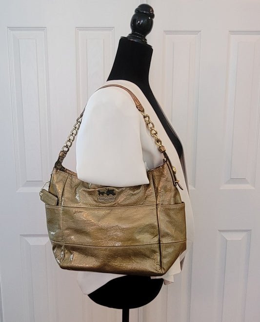 Coach: Madison Gold Patent Leather Chain Strap Shoulder Bag