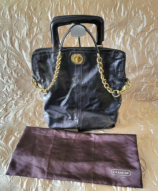 Coach: Leather Shoulder/Hand-bag with detachable gold chain strap