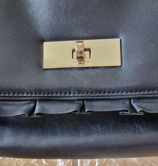 Kate Spade: Black Leather Handbag Ruffle Detail